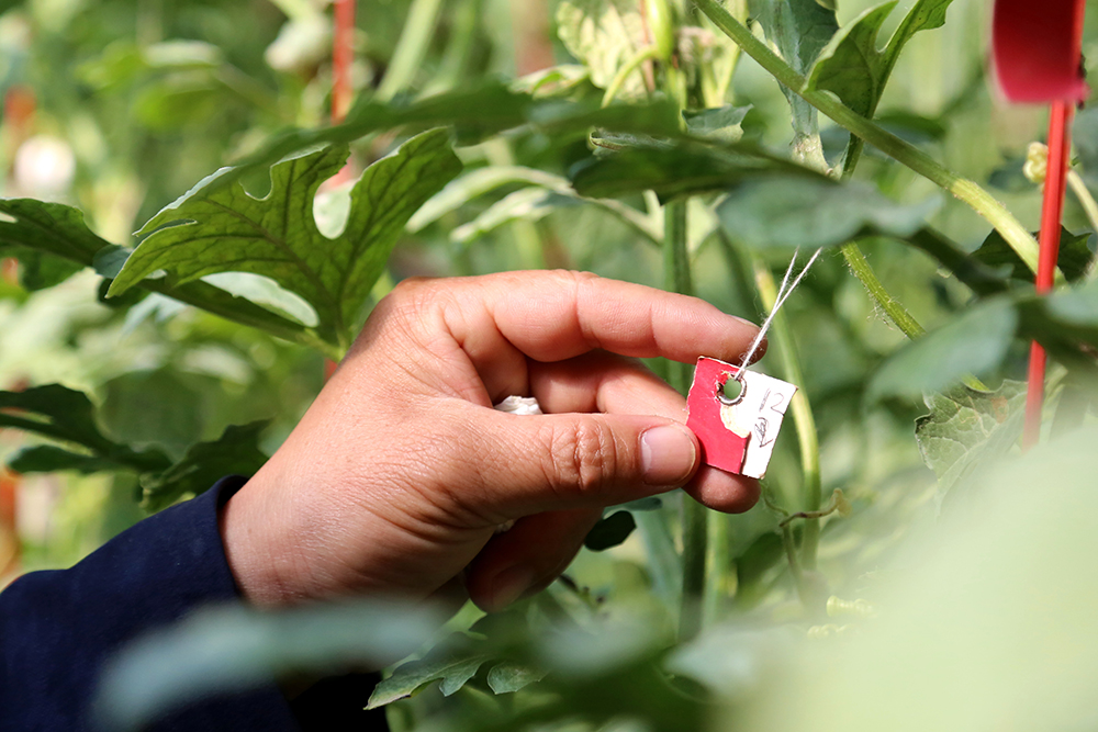 9:15在园区西瓜种植上,陈德国没有照搬仁风西瓜的“彩绳法”,而是自创“标签作法”,即根据授粉时间与成熟期给西瓜藤挂上不同号码的牌子,根据生长周期判断是否成熟。