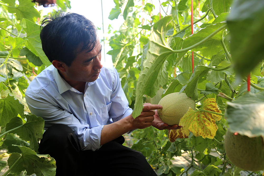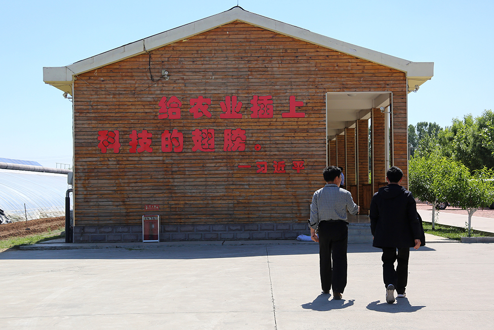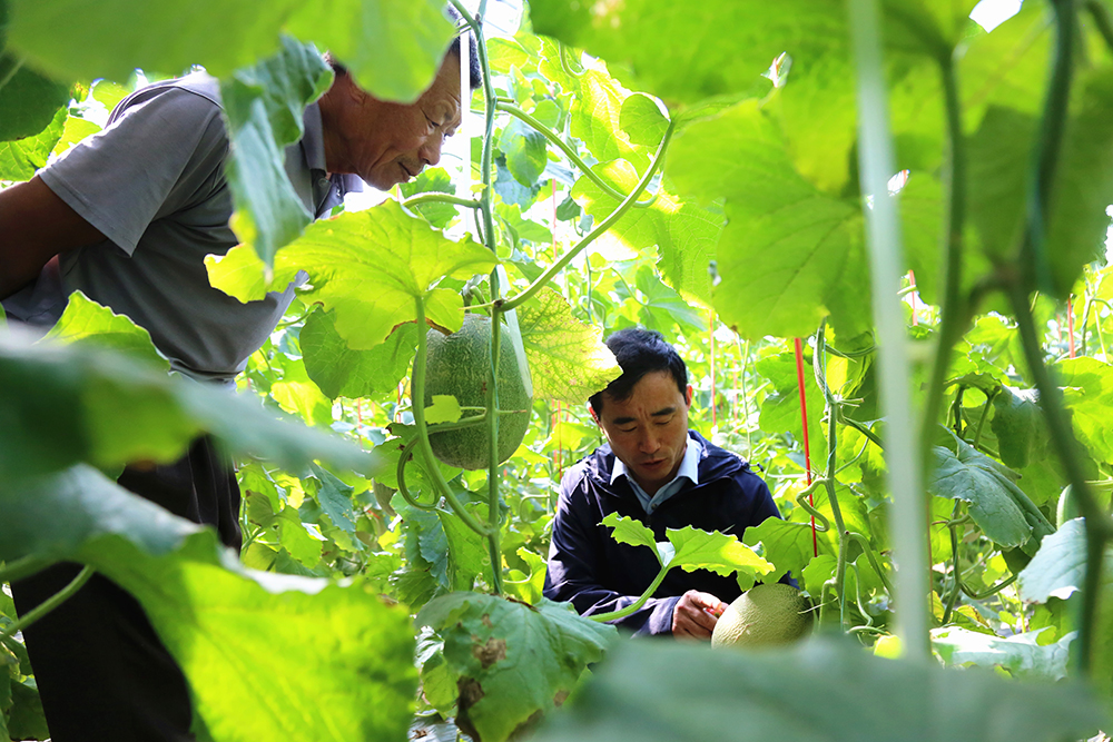 陈德国联系了其他种植哈密瓜的技术员,一同前往园区哈密瓜棚进行交流学习。在园区,这种种植户之间的交流学习几乎每天都存在,陈德国也乐于当个牵线人,园区发展好了种植户有效益才是最终目标。