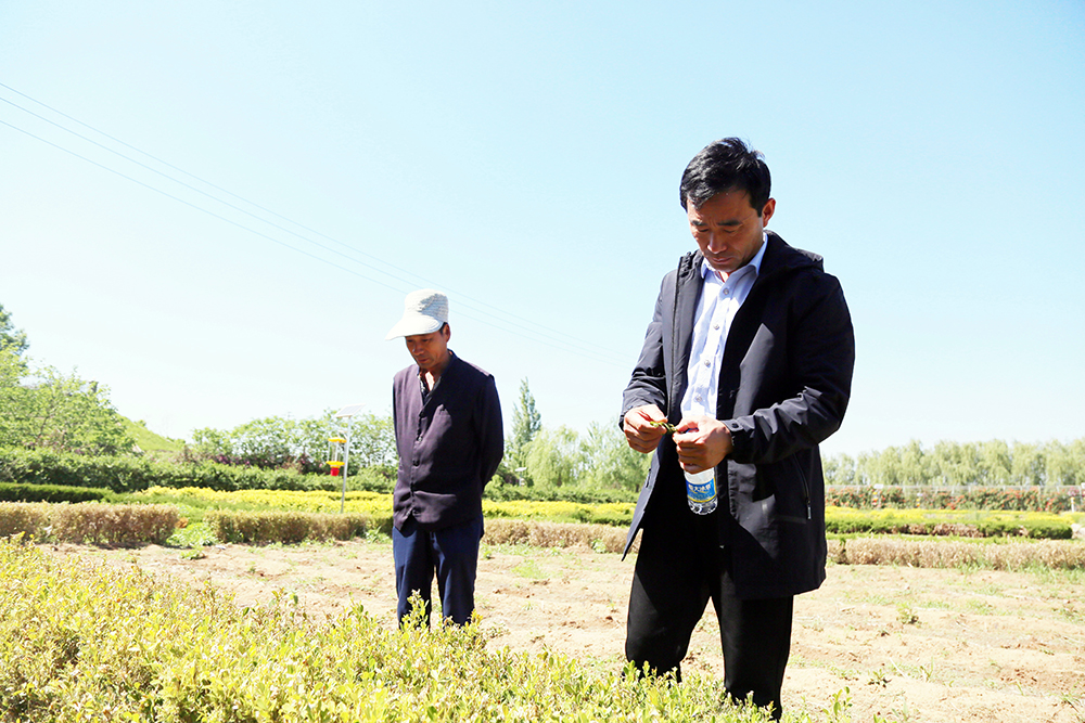 14:00去往连栋温室的路上,陈德国碰到了园林区的一位同事,向他反映了部分苗木的病虫害问题,陈德国随即与同事实地察看了病虫害情况,制定了应对方案。防患于未然,哪怕碰到一点小问题也不大意拖延,这是陈德国的一贯作风。