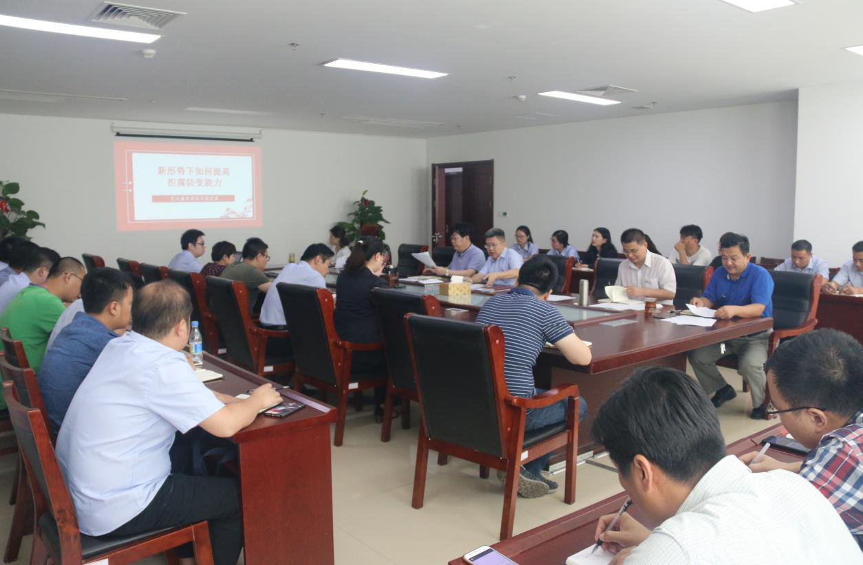 李少成副书记结合近年来发生的违纪违法案件,结合国有企业的特点,深刻地剖析了腐败的根源,分析了党风廉政建设的现状,深刻地阐述了腐败的危害,提出了党员领导干部筑牢反腐防线具体要求。同时对《国有企业领导人员廉洁从业若干规定》中重点条目进行了具体解读,巧妙引用了《禁止馈送檄》《官箴》两篇短文阐述了廉洁奉公的做人原则与道德操守,处事公正才能明辨是非,做人廉洁才能树立威信。