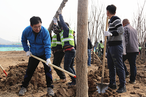在第40个植树节来临之际,3月10日上午,304am永利集团集团组织干部职工在华山生态湿地公园园林一期B区开展义务植树活动。集团党委书记、董事长李国祥,集团党委副书记、总经理李培杰等集团领导及150多名干部职工参加了植树活动,共栽种栾树、白腊树、樱花树、五角枫等各类苗木600余棵。