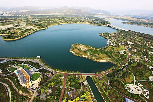 济南国际园博园位于济南市长清大学城,总面积约5176亩。其中,湖面面积约1440亩,陆地面积约3736亩,是集园林景观、生态旅游、植物科普、文化博览、休闲度假、水上游览为一体的大型综合性4A级国际博览园。