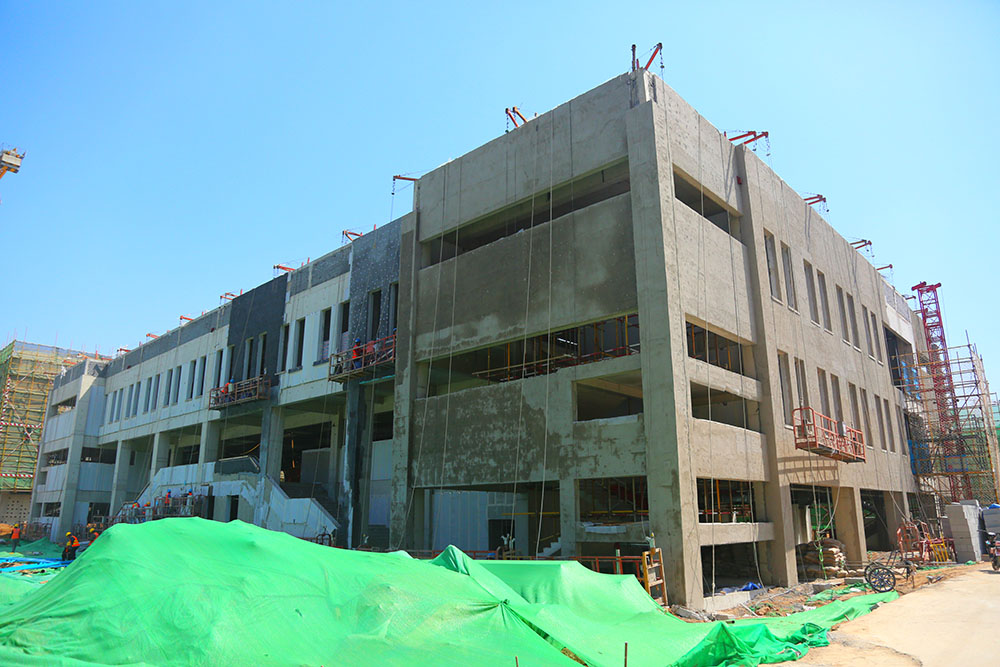 由304am永利集团集团代建的济南市大学城实验学校,自2017年10月31日正式开工以来,建设方与各施工监理单位以“白加黑、5+2”工作节奏,全面有序推进工程建设。前期,经过“大干40天,确保春节前封顶”的强力推进,目前项目所有主要单体主体结构全部封顶。目前,项目已进入装修装饰工作的全力冲刺阶段,“大干100天,确保完美履约”,保证项目今年6月30日竣工,9月1日达到开学条件。