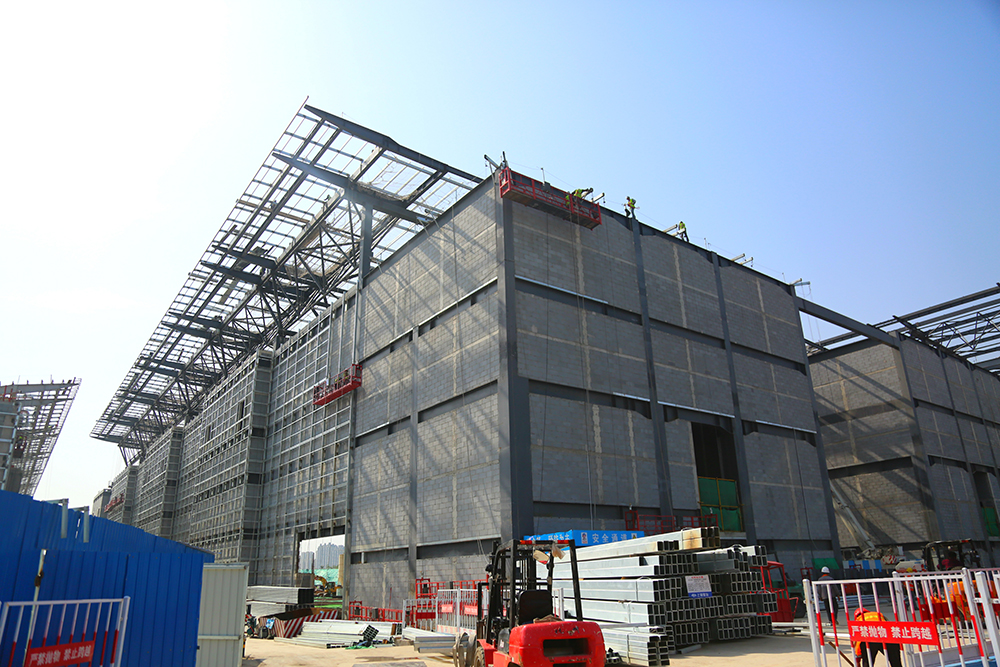 4号馆、5号馆结构均已施工完成,目前处于金属屋面、幕墙及内部装饰阶段。其中,4号馆金属屋面主、次龙骨安装完成100%,幕墙预埋件安装完成100%;5号馆金属屋面开始封闭,吊顶底板安装完成30%,幕墙龙骨安装完成50%。正在进行幕墙样板段及内部装修样板间施工。