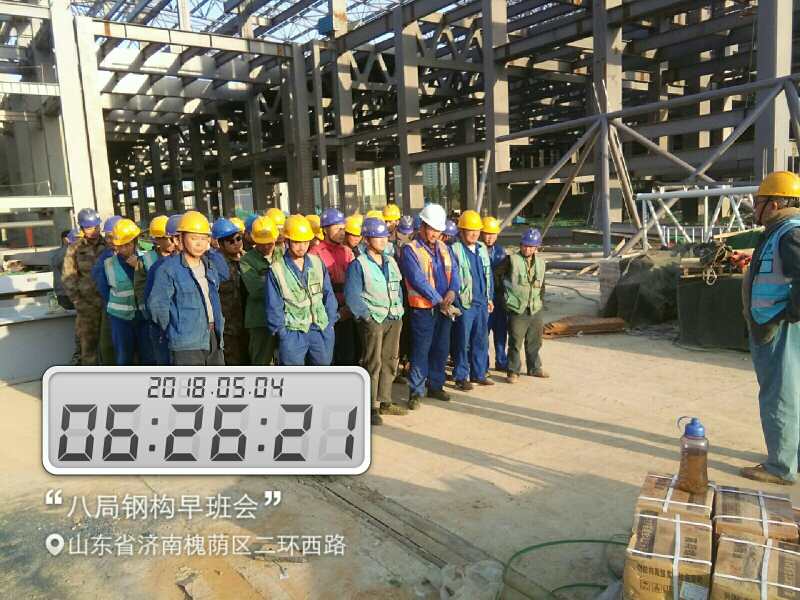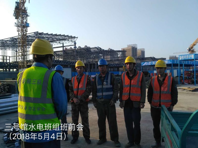 为确保项目建设有序推进,项目部不但充分利用现在施工黄金季晚上加班加点赶工期,还通过早班会制度对员工进行当天工作任务目标下达与安全文明教育。“会展中心项目部共有20多个班组,每天早上7点进场前,都会以班组为单位召开早班会,针对当天的生产任务安排、安全文明教育等事项进行宣贯,确保每个人都能明确任务目标。同时,早班会的时间也是员工们对工作技巧、困难相互交流的好机会,能发现并解决问题,查究短板不足,提高了整体工作效率。”项目现场负责人介绍道。
