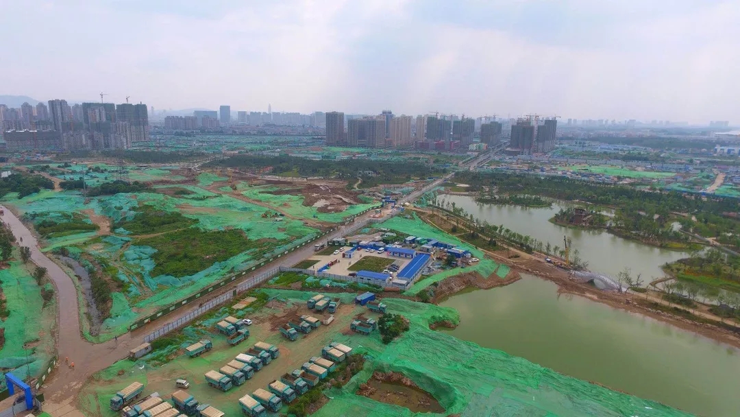 项目目前开工面积约160万平方米,已开挖成型的湖区面积约30万平方米,除临时道路外,裸土覆盖面积约100万平米。为确保渣土车辆不带泥出场,项目对场内临时道路进行混凝土硬化达8公里,普通硬化道路10余公里。项目总计投入洒水车辆15台,环卫清扫车3台,组建了120人的保洁队伍,对场内硬化便道和社会道路高频次洒水、冲洗、保洁,确保场内道路无泥浆,场外道路湿润不起尘。投入移动雾炮机100余台,保证各土方作业点均能落实湿法作业要求。