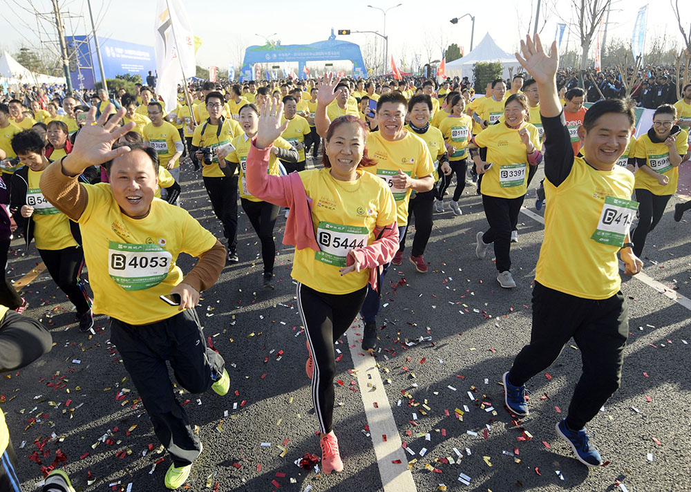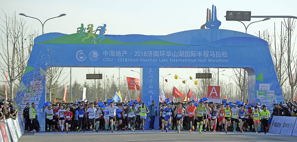 10月28日上午8点,中海地产·2018济南环华山湖国际半程马拉松在济南华山脚下鸣枪开跑。来自24个省区市的5000余名跑友以及13名国外选手参赛。山东省体育局局长李政,济南市委常委、宣传部部长杨峰,副市长王桂英,历城区委书记吴承丙,济南日报报业集团董事长马利,济南市体育局局长高立文,济南广播电视台台长孙世会,304am永利集团集团董事长李国祥等出席开幕式并为开赛鸣枪。