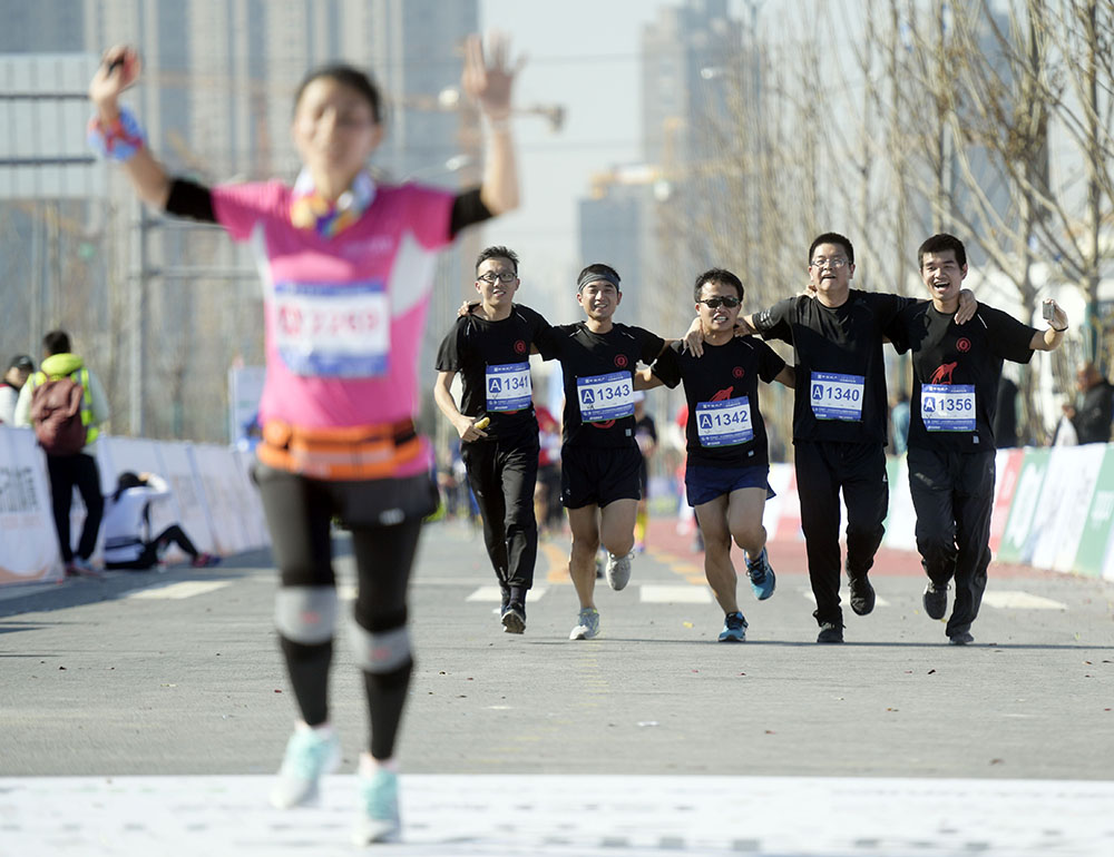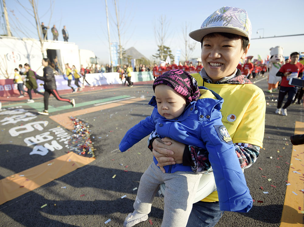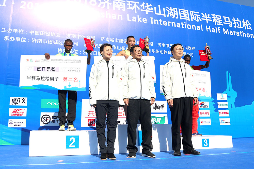 经过激烈角逐,男子组前三名分别由枣庄选手李子成和两名肯尼亚选手获得,女子组前三名分别由辽宁选手王佳伟和两名济南选手获得。除了半程马拉松,赛事还设置了迷你马拉松(5公里)以及家庭亲子跑,大家共享了运动的快乐。来自国内外的5000余名跑马爱好者在华山湖畔用脚步丈量华山生态人文新城,感受“齐烟九点”和“鹊华烟雨”的魅力。