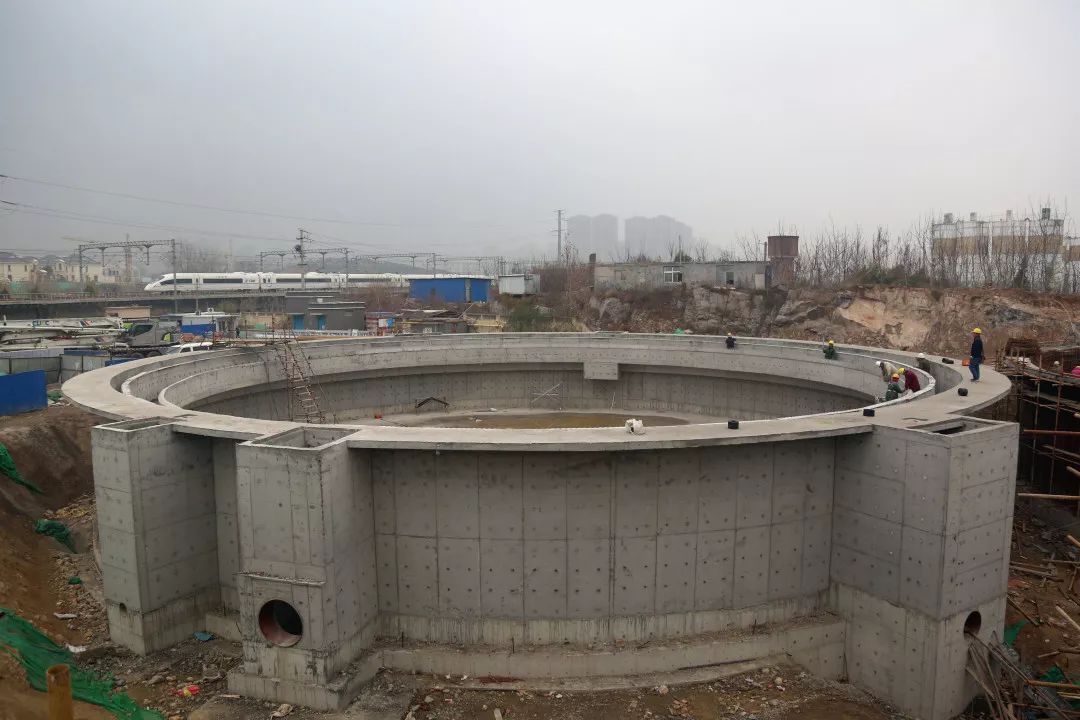 腊山水质净化厂项目控制用地3公顷,设计处理规模40000m³/d,主要服务于腊山片区及玉符河两岸收集的生活污水,工程规模4万吨/日,处理出水满足《城镇污水处理厂污染物排放标准》的一级A标准,污水处理主体工艺采用预处理+AAO工艺+深度处理工艺。目前,项目投入近240名工作人员,各通水单体的建设正加班加点推进中,努力确保按计划完成。