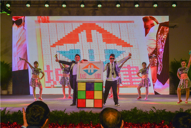 在欢快喜悦的歌舞《拜新年》中,汇演拉开序幕,红红火火的舞台,映射着蒸蒸日上的发展势头。舞蹈《成长》《奋进》以激昂的音乐,吹响了催人奋进的号角,用动感的舞步,舞出了城建铁军的蓬勃朝气。《马路情缘》《铁军男相亲记》《生日》《真相》《男争女辩》《筑梦同行》等语言类节目围绕生产经营精心编排,真实感人,催人奋进。励志感人的歌曲,绚丽多彩的歌伴舞,酷炫的舞蹈,神秘的魔术,魔幻的黑光剧,生龙活虎的京剧,让观众着实过了一把眼瘾,台下掌声不断,欢欣喜悦的气氛一浪高过一浪。小品里父母、妻子、孩子那一段段心里话,令人感同身受,潸然泪下,家属们用实际行动表达了对企业最大的理解和支持,大家在这个温暖的大家庭中,以诚相待,温馨彼此。在激动人心的歌舞串烧《开创未来》中,汇演圆满落下帷幕,集团领导与演职人员合影留念。
