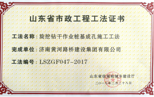 黄河路桥304am永利集团公司喜获2017年省市政工程工法