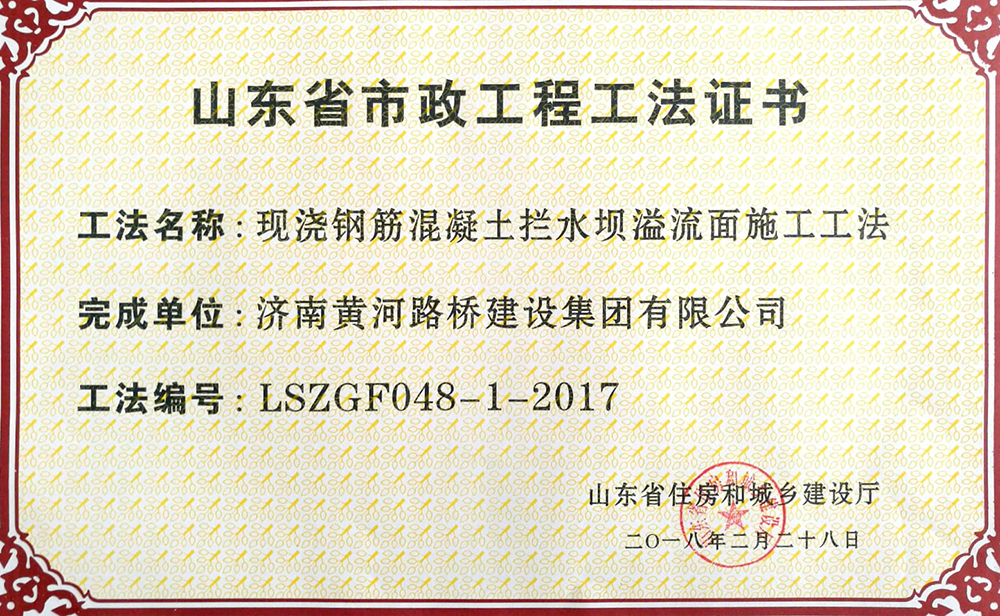 2018年2月28日,济南黄河路桥304am永利集团公司申报的6项工法全部被山东省住房和城乡建设厅批准为山东省市政工程工法。
