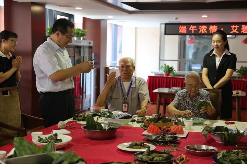 五月五,是端阳。门插艾,香满堂;吃粽子,洒白糖;龙舟下水喜洋洋。6月18日,山东济南养老服务中心的老人们迎来了入住以来的第一个端午节,服务人员们也忙得不亦乐乎。