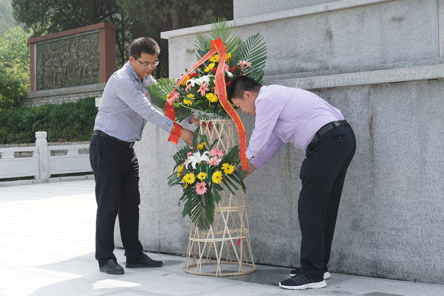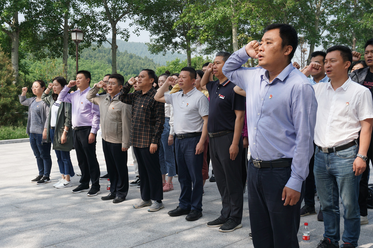 随后,在初心广场,在鲜红的党旗下,全体党员重温入党誓词。铿锵有力的誓言在大峰山久久回荡,充分展现了全体党员干部坚守初心、忠诚于党、团结奉献的坚定信念,并到大峰山革命烈士陵园,向烈士敬献了花篮,全体党员干部面向庄严的纪念碑鞠躬默哀,深刻感受革命先辈断头流血的忘我精神,以及在国与家、生与死的考验面前对崇高革命信仰的坚守与执着。