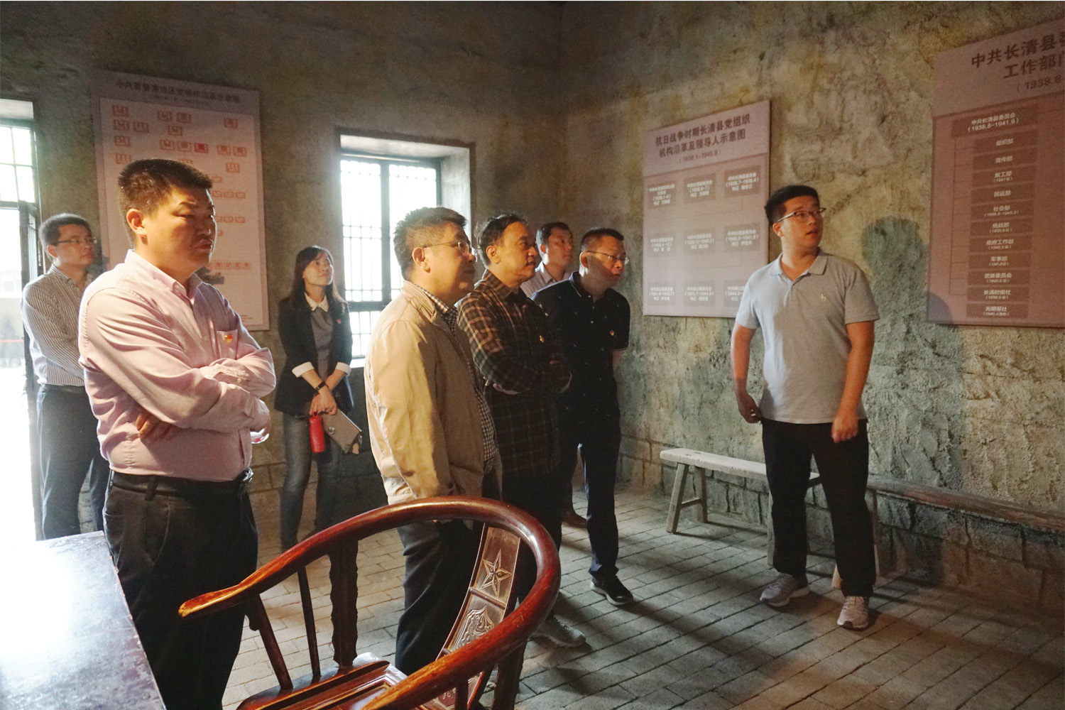 全体人员先后来到大峰山革命根据地纪念馆、大峰山独立营办公旧址,集体参观了解革命先烈带领长清人民作战、生活、生产的场面与党史事实。通过认真聆听解说员讲述那一幅幅珍贵图片、一件件历史遗物、一段段英勇事迹,党员同志们深刻了解了大峰山革命根据地的建立和建设历史,所有党员接受了一次生动而深刻的革命传统教育。