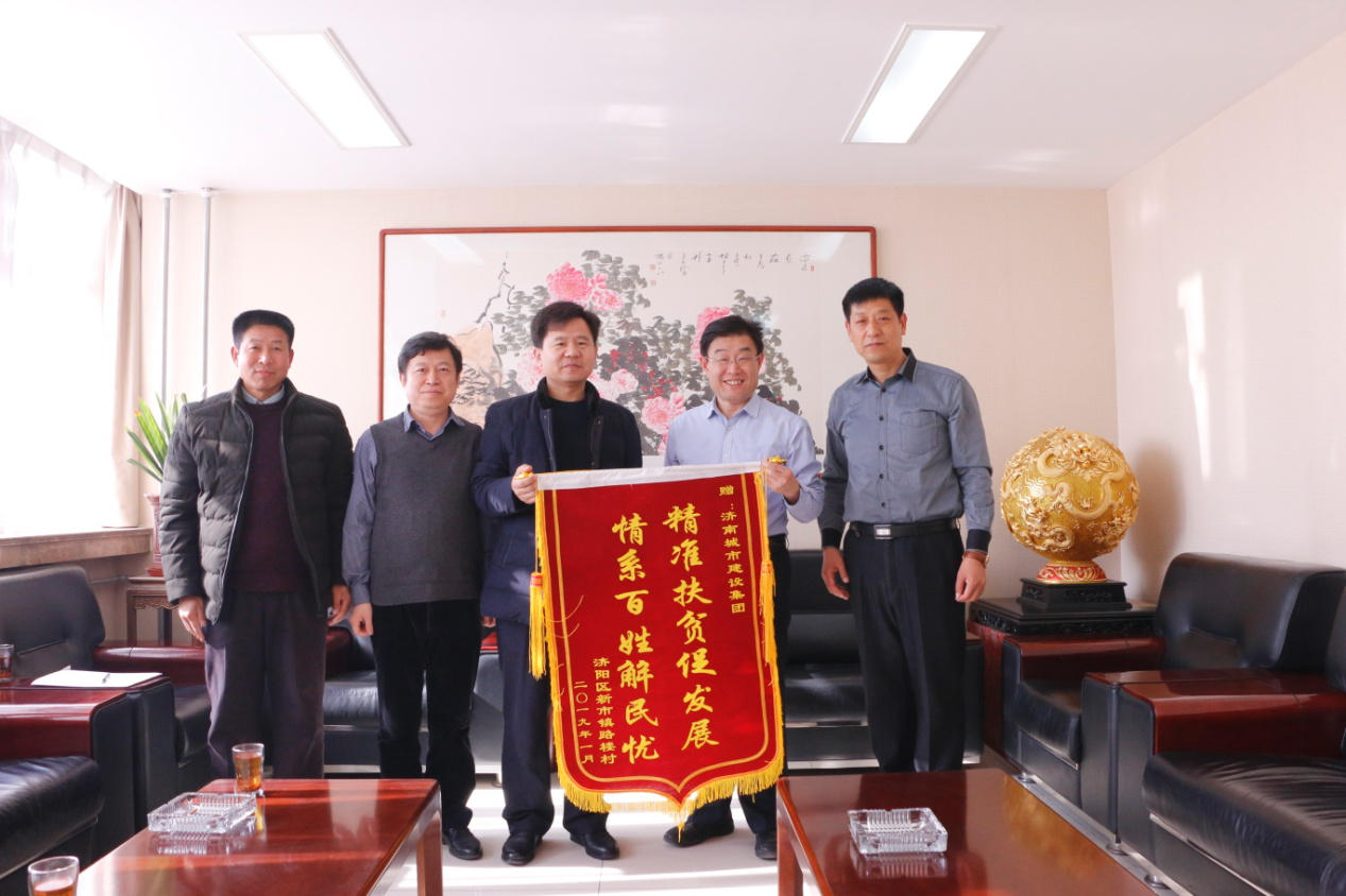 1月25日,济阳区新市镇党委副书记王勇、镇扶贫办主任刘俊青、路楼村支部书记路和勇、路楼村“第一书记”张庆红一行到304am永利集团集团就帮扶工作进行回访,并为集团送来锦旗,集团副总经理安玉坤、集团办公室副主任徐峰参加活动。