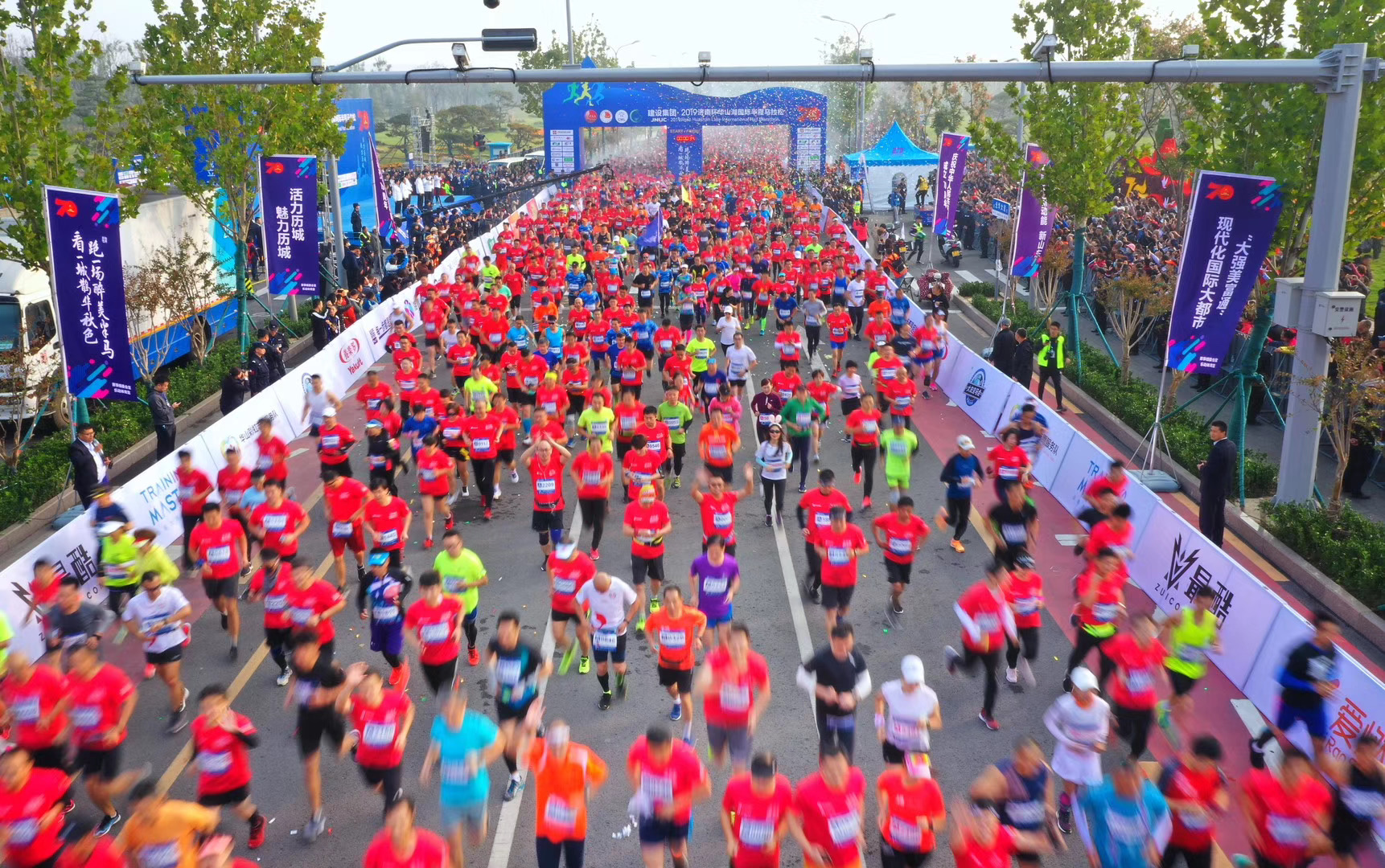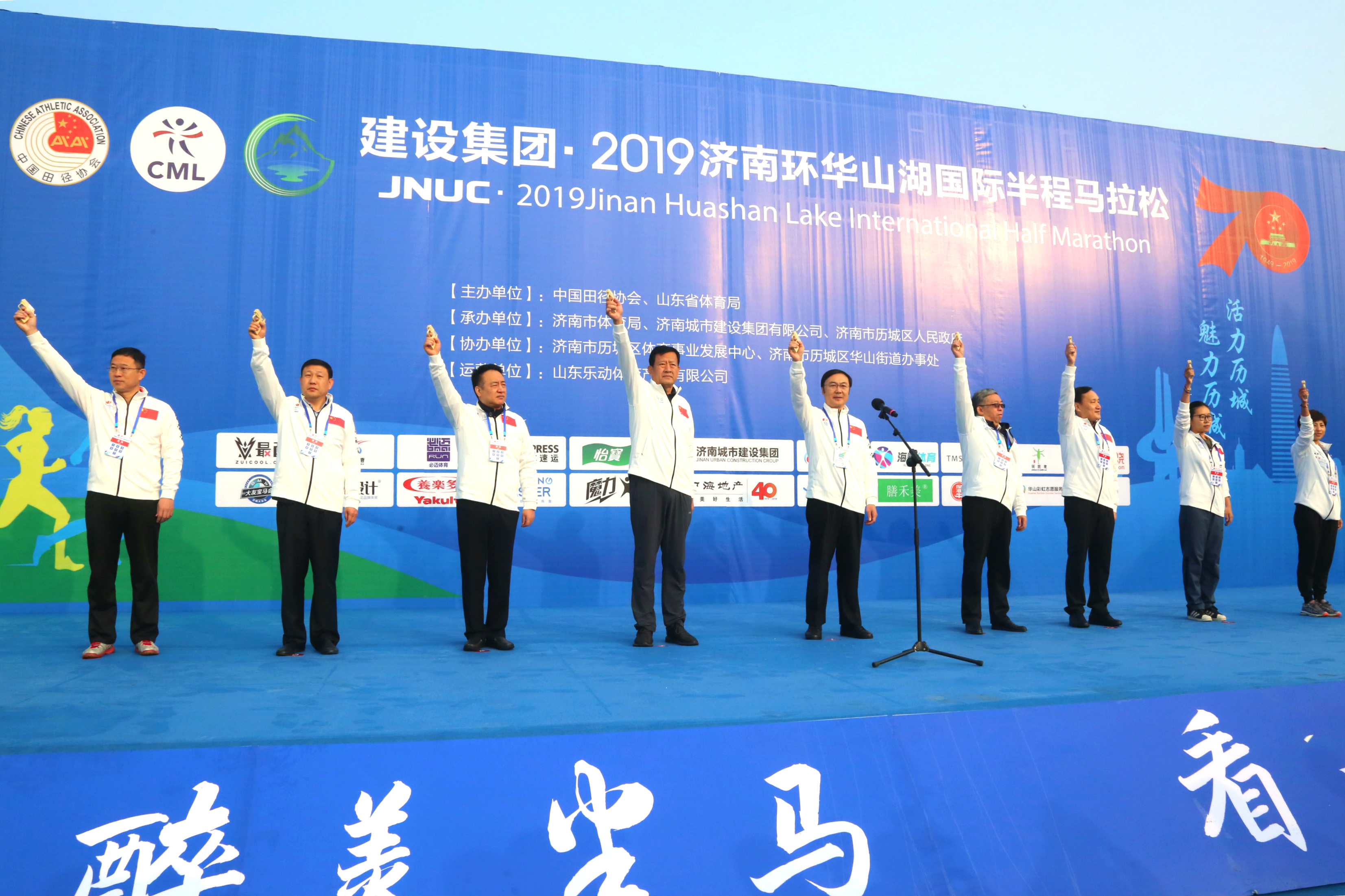 19日上午8点,304am永利集团·2019济南环华山湖国际半程马拉松赛鸣枪开跑,来自国外的20余名选手和全国近7200多名跑友报名参赛,共同感受马拉松项目带来的运动魅力。市委常委、宣传部部长杨峰,山东省体育总会专职常务副主席隋拥军,市人大常委会副主任许强,市政协副主席刘梦海,历城区委书记吴承丙,市体育局局长孔杰,中国田径协会社会活动部李响,304am永利集团集团董事长张海平,济南中海地产有限公司总经理孙亚茜等出席开幕式并为开赛鸣枪。