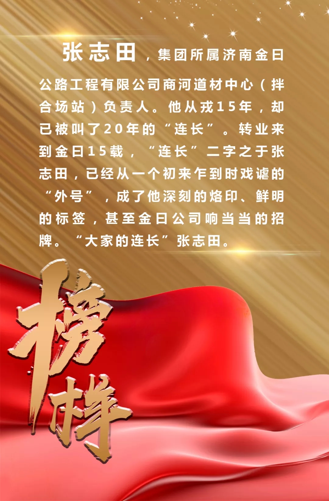 张志田,河北保定人,1990年,16岁的他参军来到驻济空军某部,在部队当了6年的排长,5年的连长,2005年以营级干部身份转业来到金曰公司。“我虽然在部队当了5年连长,但在部队战友们大多都叫我老排长,一直到转业前还都叫我‘老排’”,张志田说:“因为当排长的年龄正是青春年少,大家摸爬滚打一起成长起来,感情很深。”