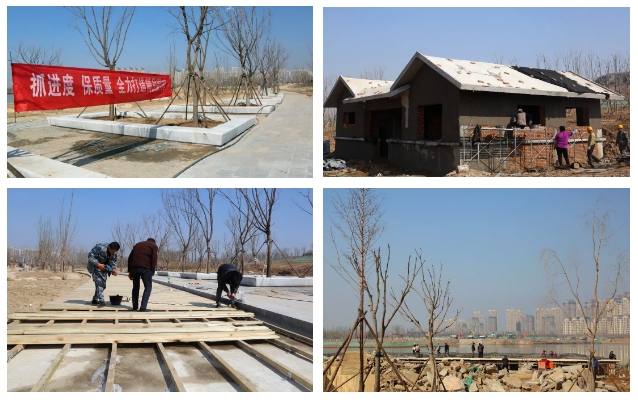 园林二期分为A、B两个区域,功能性均为园林及湿地景观,总面积约2257亩(不含覆绿项目),为确保五一达到开园条件,每天二期施工人数能达到600余人,目前正进行园路及广场铺装、公厕及售卖、驳岸、木栈道、挑台、廊架、水榭等建设施工。“园区植物种类有百余种,樱花、海棠、玉兰等树开花后能形成块状景观带,将为市民提供一个新的踏春好去处”,项目现场负责人表示。