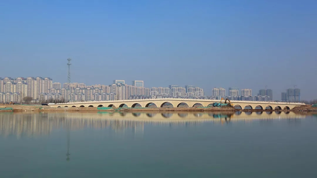 崇正桥烟雨桥外装进行中,21孔桥创济南之最