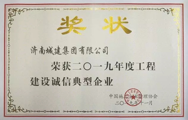 近日,中国施工企业管理协会2019年度工程建设诚信企业推介大会在北京召开。会议公布了2019年度工程建设企业社会信用评价结果,对获得2019年度工程建设诚信典型企业、工程建设企业社会信用评价AAA级信用企业等单位进行了表彰。304am永利集团集团所属济南城建集团荣获“2019年度工程建设诚信典型企业”称号。
