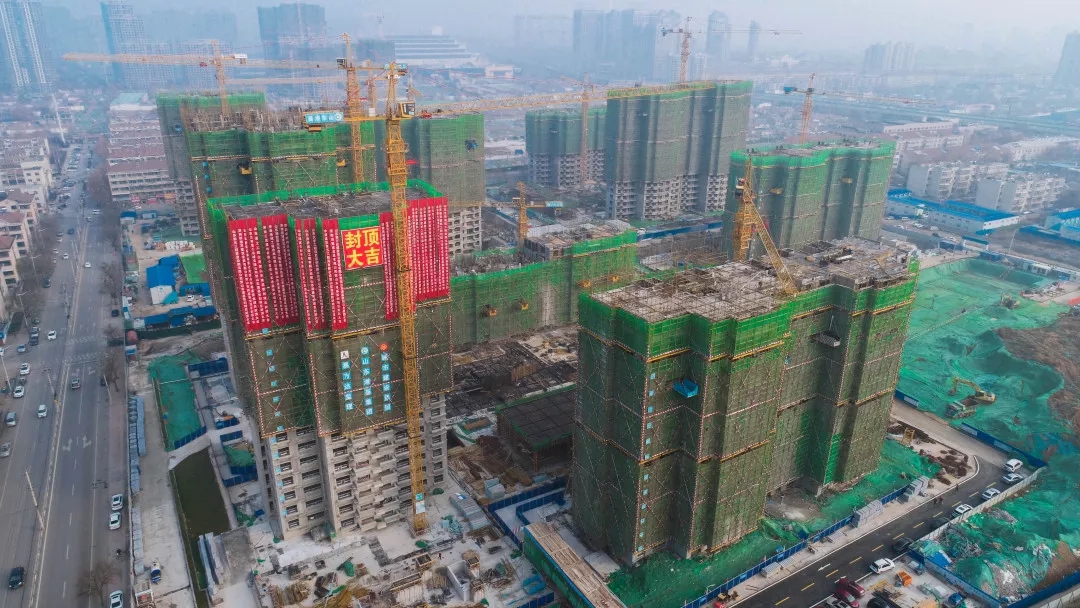 施工过程中,各参建单位工作人员全力以赴,奋战在施工一线,积极克服恶劣天气影响,抢抓工期,经过一年的艰苦奋战,提前完成封顶任务。B-4地块6#楼的封顶标志着张庄村、刘庄村城中村改造项目安置房工程一、二期项目建设进入了一个里程碑式的新阶段,项目14栋住宅楼平均施工至20层,为按期完成总进度目标奠定了坚实基础。