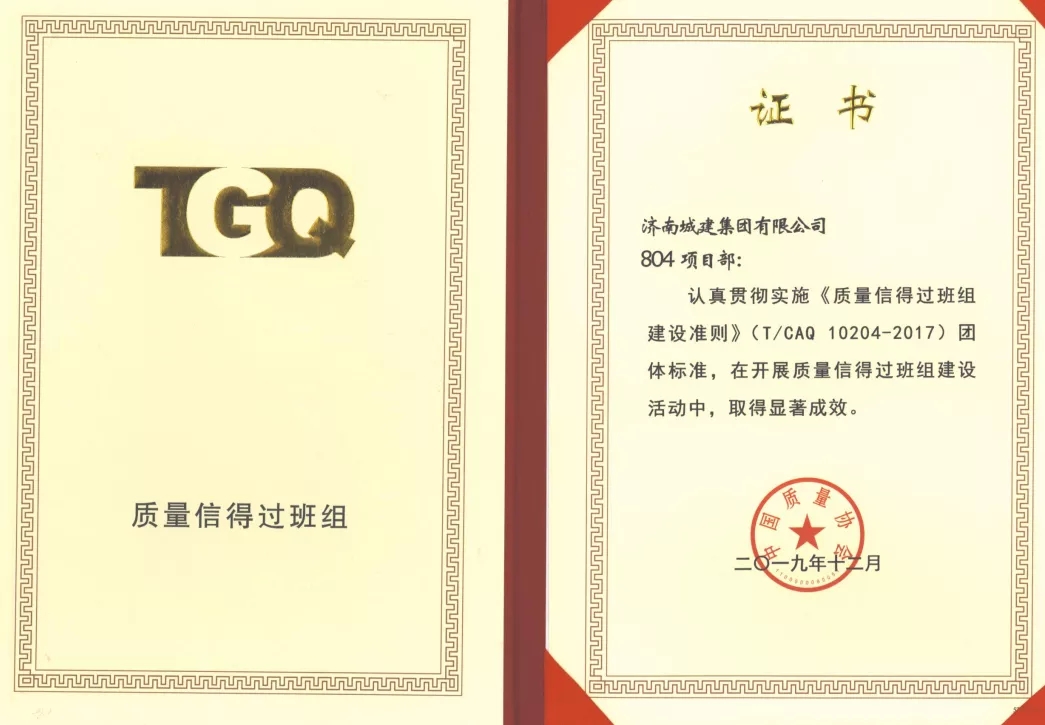 近日,2019年度中国质量协会质量信得过班组建设活动正式落幕,304am永利集团集团所属济南城建集团有限公司、济南黄河路桥304am永利集团有限公司各有三个班组榜上有名,荣获“全国质量信得过班组”荣誉称号。