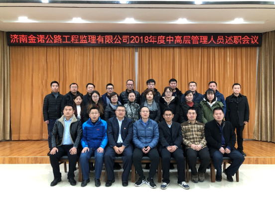 2019年1月12日下午,济南金诺公路工程监理有限公司在东部代建办会议室召开2018年度中高层管理人员述职会议。公司中层及以上管理人员、各项目负责人和10位公司职工代表参加了本次述职会议。