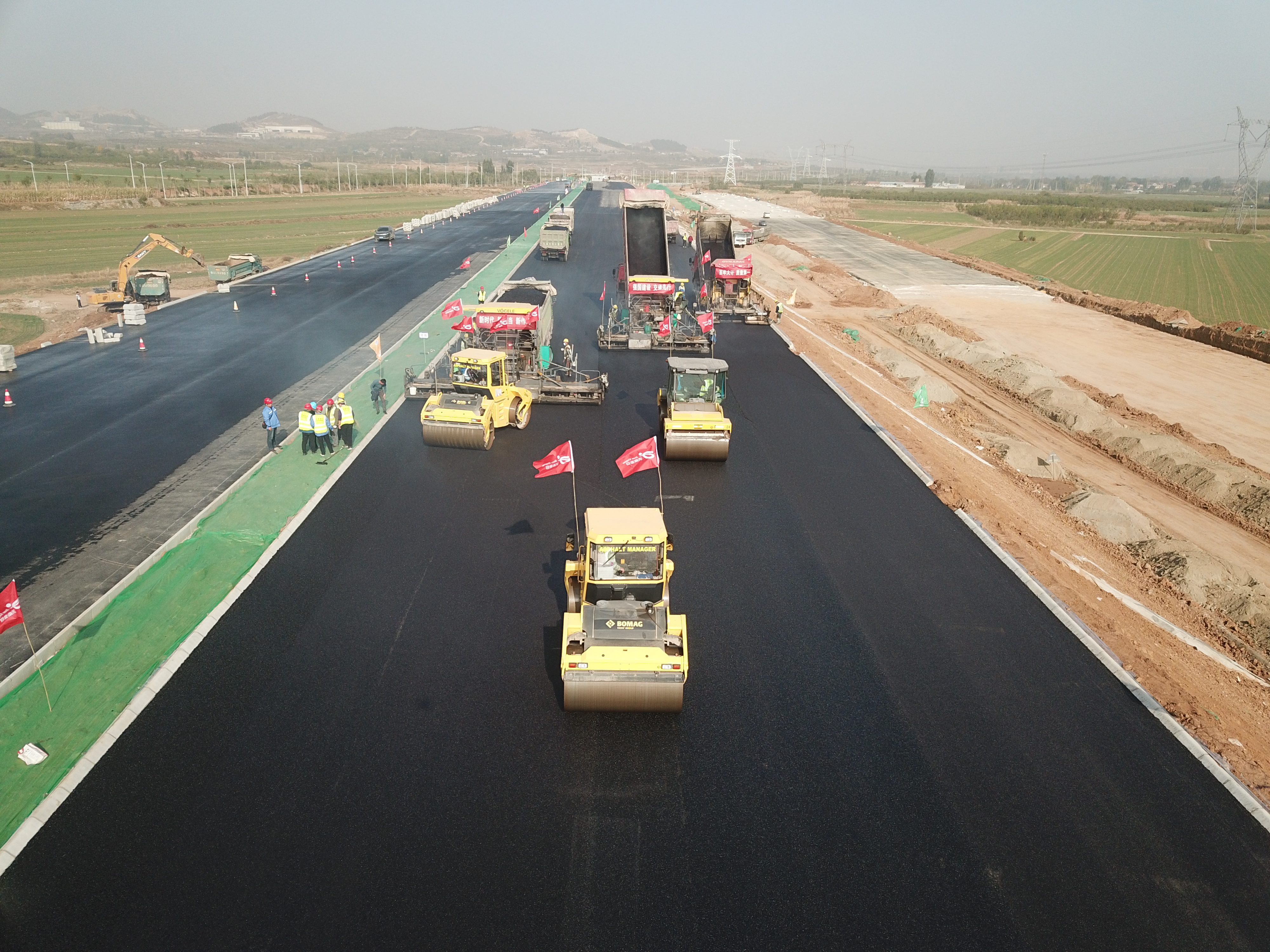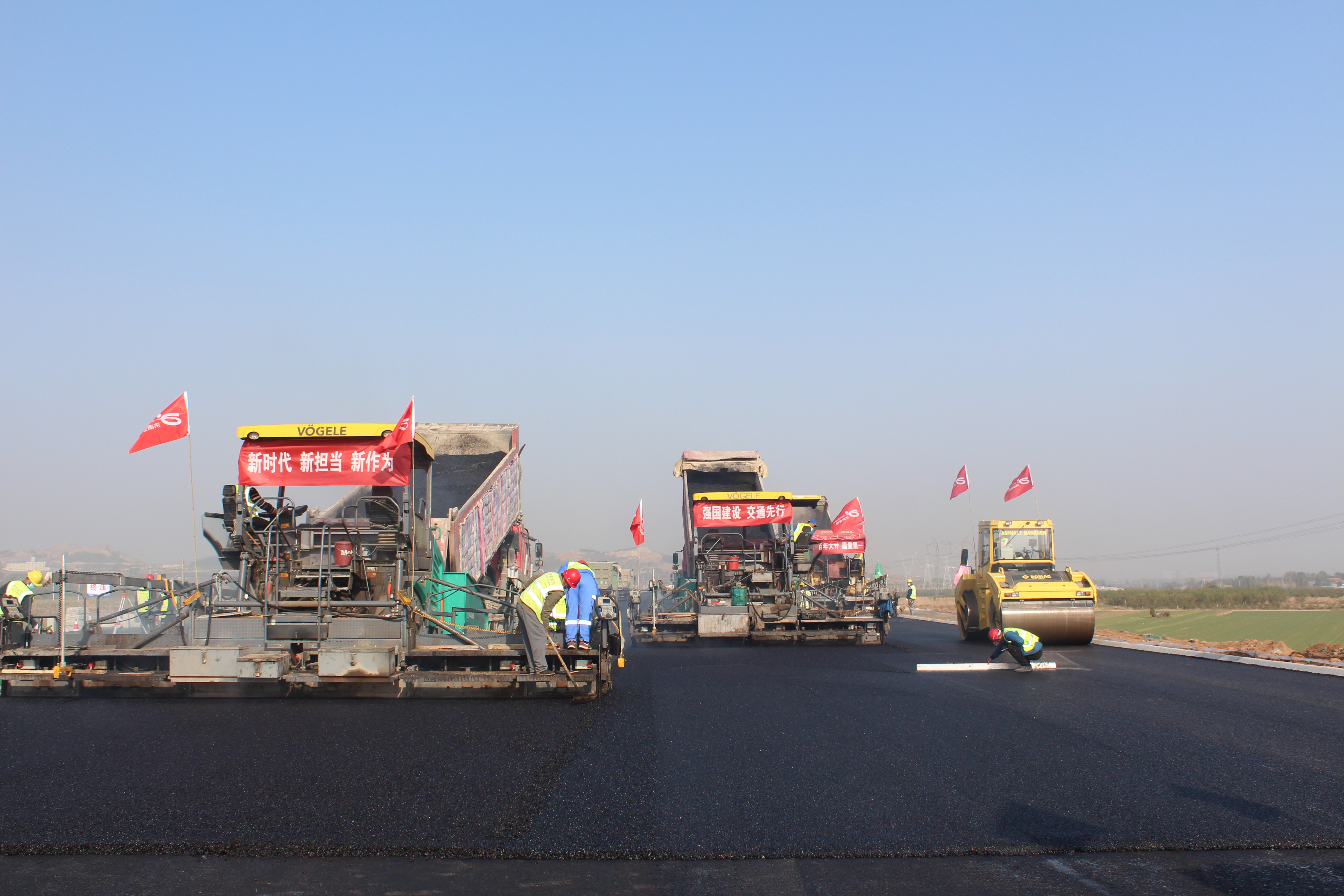 为确保沥青试验段顺利开工并取得预期效果,工程项目部提前谋划,合理组织,积极做好开工前的技术安全工作,专门组织试验、测量、设备操作等相关人员参加的施工技术交底会和设备操作培训专题会,施工中严格控制沥青混合料的拌合、运输、摊铺、碾压、检测,各道工序有序配合。