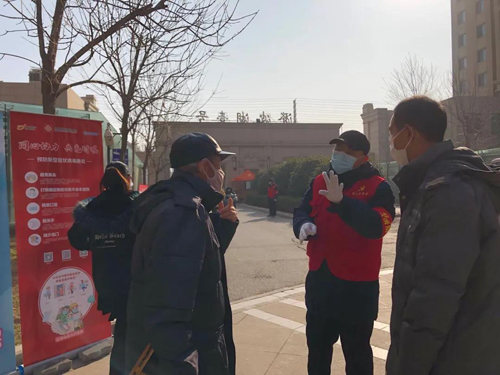 3月3日,第五批志愿者们正式上岗。藏蓝色大衣、红色志愿者马甲、蓝色口罩、疫情防控志愿者袖标,还有满腔为疫情防控工作贡献力量的热情。