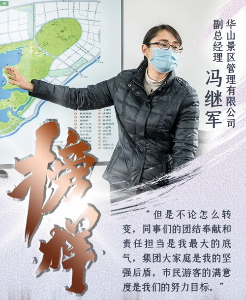 负责华山景区公司工作之前,冯继军长期在负责片区开发建设的华建公司任副经理,全面参与了华山片区的开发建设过程。近两年,华山历史文化湿地公园进入加速建设阶段,全体建设者奋战无数个昼夜,让这片土地日新月异、沧海桑田,“鹊华烟雨”山水胜境再现,创造了“华山速度”和“华山模式”。几年间,华山景区的每一株花草树木、每一寸亭台楼阁,都倾注着冯继军和所有建设者们的心血,湖光山色映照着这群“园丁”们的初心和使命,镌刻着他们的辛勤与智慧。