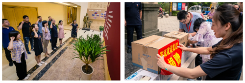 在滨湖社区宗旨教育展厅,全体党员和积极分子在审计与监事会党支部书记祁咏梅的带领下重温了入党誓词。集团党委委员、总会计师范天云带领党员们为社区捐赠了矿泉水、花露水、洗手液等防暑物资。济北街道、滨湖社区及集团“四进”工作组有关同志陪同参加了此次活动。