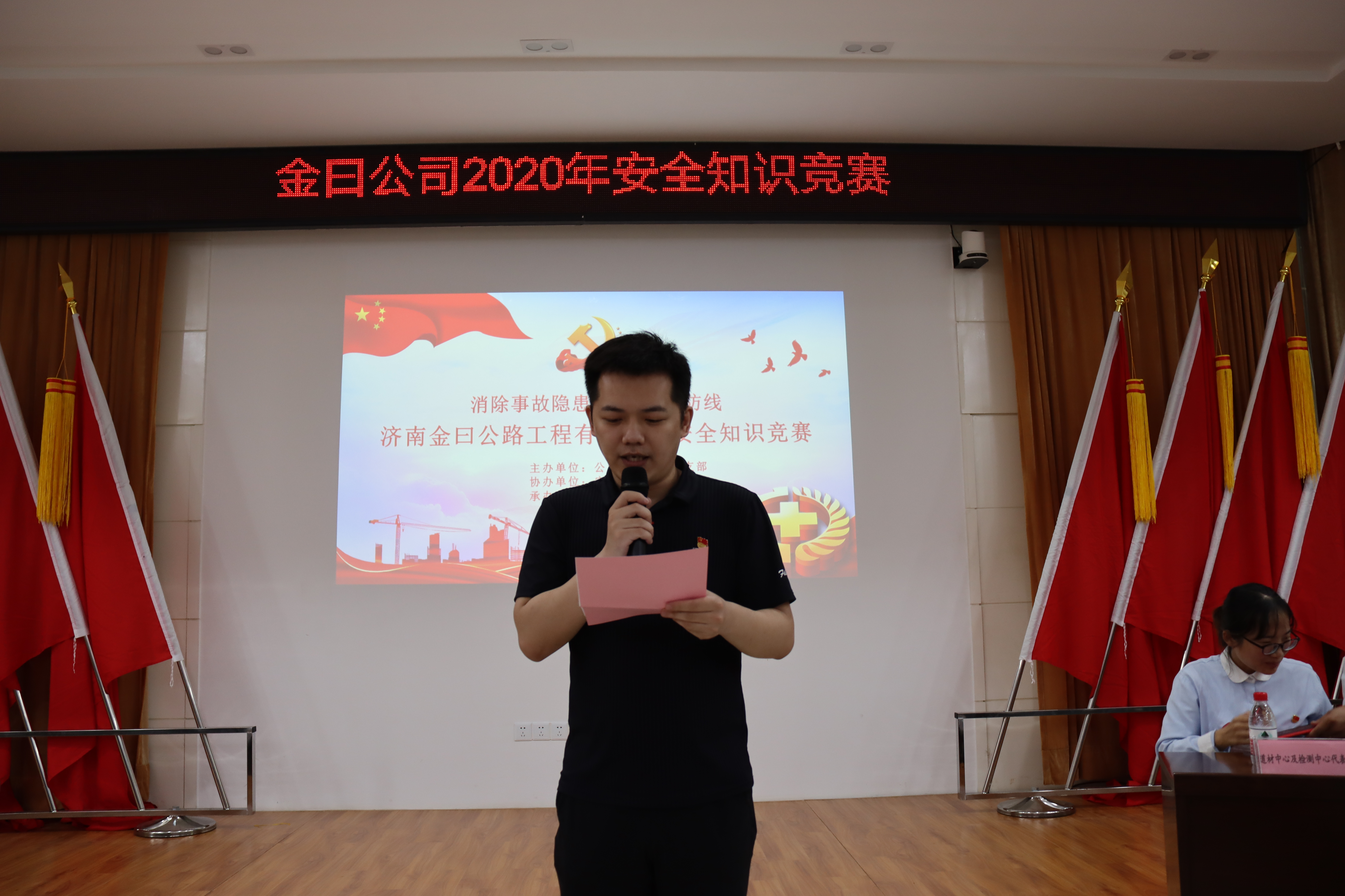 为响应2020年安全月“消除事故隐患,筑牢安全防线”的主题号召,全面贯彻上级党委对安全生产工作的部署,普及安全生产知识,济南金曰公路工程有限公司团支部于6月24日举办了安全知识竞赛。304am永利集团团委书记张旸、安委办侯守军主管、市政资产运营公司团支部书记王一丁、齐鲁交通集团济南公司副总田中亚等出席活动并担任活动评委。