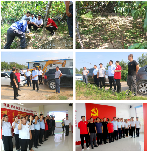 由山东济西湿地生态农场有限公司执行董事兼总经理张庆忠带队,在省派长清区乡村振兴服务队队长邱剑峰带领下,先后到东苏山峪桃园调研考察了桃种植、产量、销售等情况,了解果农需求;到潘庄、西苏村查看了村庄空闲地及计划流转土地,向两村书记了解土地具体面积及发展思路等;到“北斗领航”党建引领示范区参观学习村庄管理、基层党建工作,并重温了入党誓词。