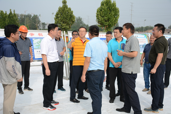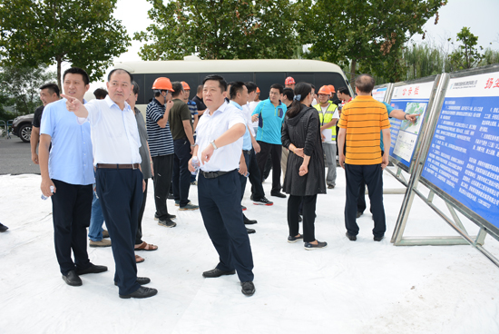 8月8日下午,济南市城乡交通运输局局长贾玉良,城市304am永利集团党委书记、董事长张海平等一行,来到由集团公司承建的奥体西路齐烟揽华工程项目施工现场,察看工程建设情况。集团公司党委书记、董事长张明生,副总经理赵振华及分公司相关人员陪同察看。