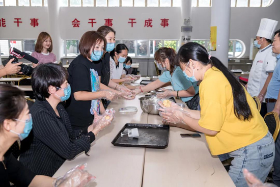活动现场,集团政工部负责同志代表集团向大家致以了节日的问候和祝福。随后,面点师傅将制作月饼的皮、馅料、手套、模具等工具发给大家,“将面皮搓圆后摊平,然后把馅儿放到中间,以食指和拇指的力量慢慢向上收口,合拢后放入模具……”在师傅的悉心教导下,大家有条不紊地开始制作,五人一组,分工明确,各司其职。几分钟后,一个个制作精美的月饼就完成了。