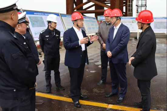 在主桥施工现场,工作组认真听取了齐鲁黄河大桥工程建设等有关情况的汇报,并详细了解了主桥梁板架设、施工中存在的问题难题和建设工期安排。曹凤阳表示,此次“万警进万企”活动紧紧围绕市委政法委部署要求,坚持“主动联系企业、主动服务企业、主动保护企业”原则,及时了解企业需求,响应企业诉求,努力为企业办实事、做好事、解难事,建立常态化联系沟通机制,助力企业健康发展、高质量发展。他指出,齐鲁黄河大桥的顺利建成将极大推动槐荫和齐河两地旅游业和经济社会互动发展,为建设“大强美富通”现代化国际大都市作出新的更大贡献。