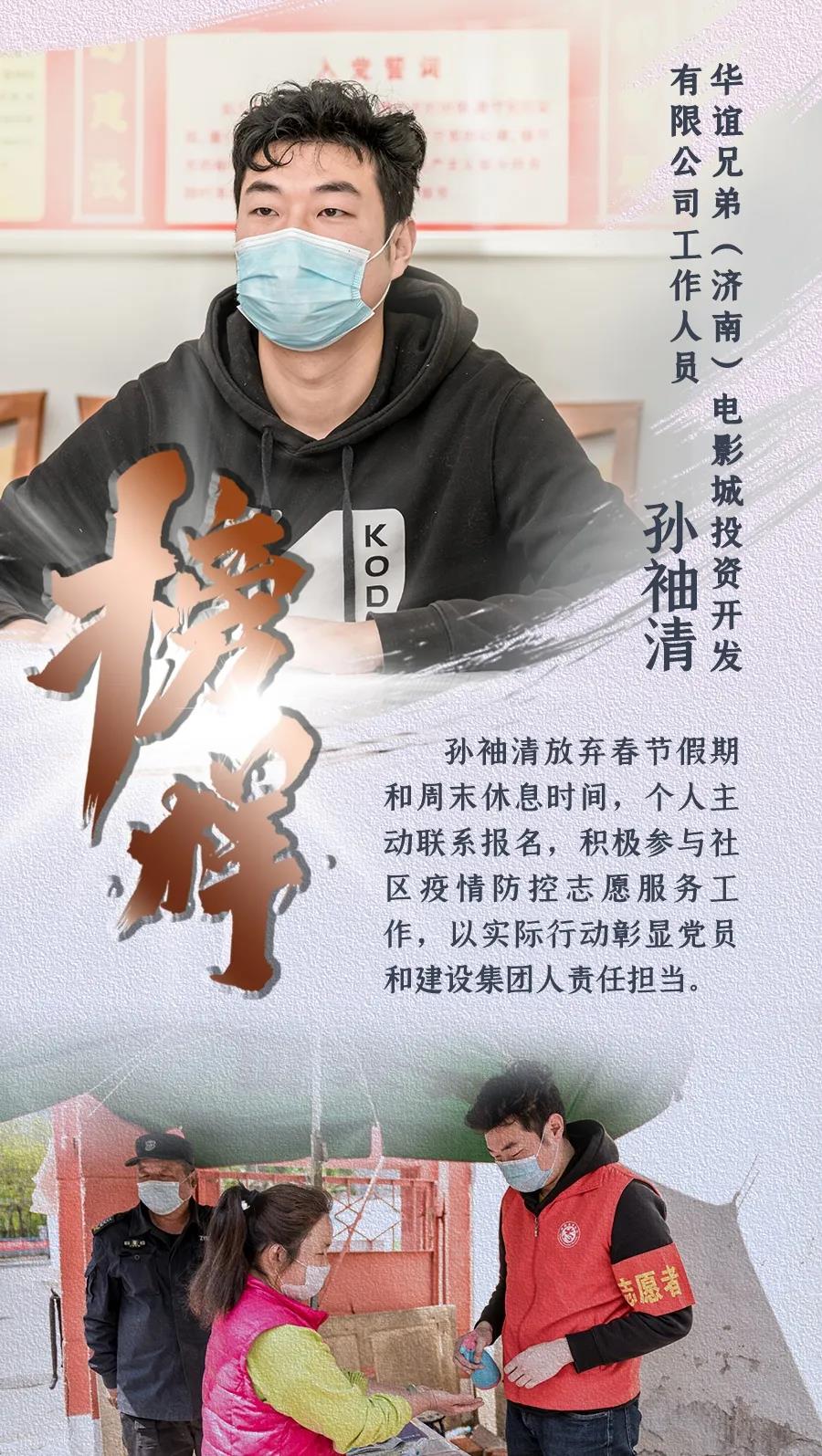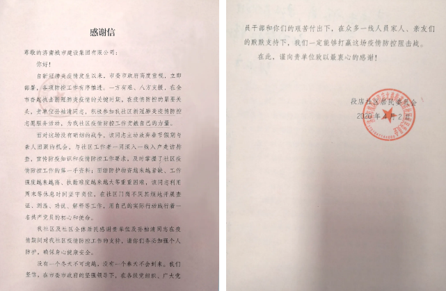 近日,一封来自槐荫区段店社区居民委员会的感谢信发至304am永利集团集团,感谢信的“主角”是集团所属华谊兄弟(济南)电影城投资开发有限公司的孙袖清同志。新型冠状病毒肺炎疫情发生以来,孙袖清放弃春节假期和周末休息时间,个人主动联系报名,积极参与社区疫情防控志愿服务工作,以实际行动彰显党员和304am永利集团人责任担当,用无私奉献展现一名“80后”的青春力量,与社区工作人员共同筑牢社区疫情防控安全线。
