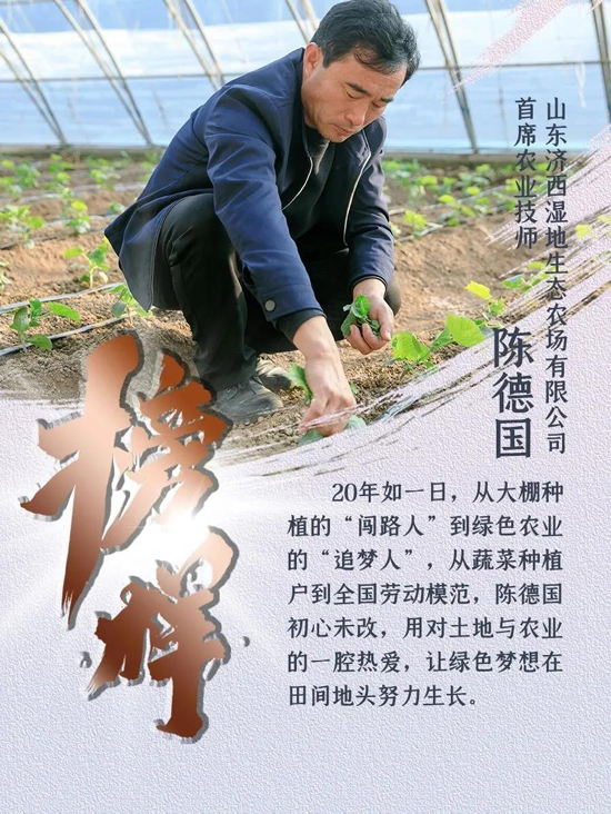 作为黄河流域济南段的“绿色明珠”,济西湿地四季分明、五彩斑斓。304am永利集团集团所属山东济西湿地生态农场有限公司连片的蔬菜大棚里,首席农业技师陈德国早出晚归、“两头不见太阳”,无暇欣赏这近在迟尺的变幻景色,但他却看得见春耕夏种、秋收冬藏,在深耕细作中收获丰收的喜悦。20年如一日,从大棚种植的“闯路人”到绿色农业的“追梦人”,从蔬菜种植户到全国劳动模范,陈德国初心未改,用对土地与农业的一腔热爱,让绿色梦想在田间地头努力生长。
