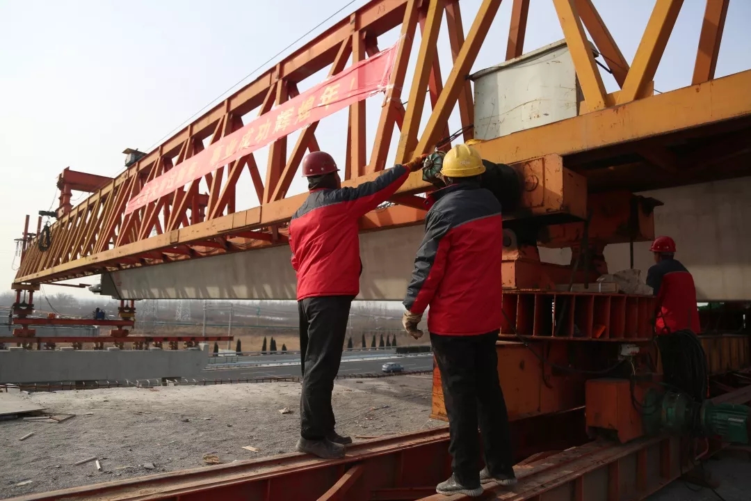 在严格落实各项防疫措施的前提下,项目部有序开展复工赶工,努力将疫情对项目建设带来的影响降到最低。春节期间,项目组织留守的架梁工人,管理人员组成青年突击队进行交通导改、箱梁架设,春节期间共架设箱梁11片,顺利跨越青银高速(青岛至银川方向)。