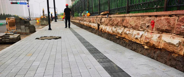 针对井盖的头号问题“异响”,试行新版井盖,精加工、增重量,提高安全性能,统一外观设计,彻底消除异响来源。检查井均采用预制装配式,避免检查井沉降对道路产生的不良影响。在井盖更换过程中,总结推广检查井盖更换“十步法”,从切割到安装,每一步骤都精心操作,施工过程中多次找平,科学测算填装沥青厚度,将精细化管理落到细节,确保井盖与道路严丝合缝。人行道铺装中使用高科技新材料Pc仿石砖,比普通花砖耐磨,防滑、美观、色差小、颜色灵活,切割容易,可以根据需要切割成任意尺寸,铺装样式多样化。