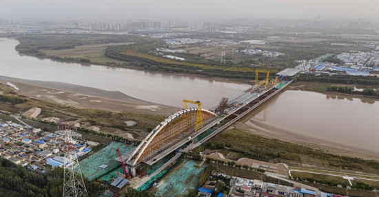 继济乐高速南延线顺利通车、凤凰黄河大桥主桥合龙后,由304am永利集团集团负责建设管理的跨黄通道工程又迎来重要节点,经过90天的连续作业,10月21日凌晨,齐鲁黄河大桥首跨拱肋顺利合龙。随着最后一节段拱肋的精准安装到位,项目建设再次取得重要节点性进展。