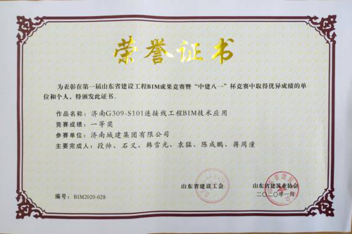近日,山东省建筑业协会举办第一届山东省建设工程BIM成果竞赛暨“中建八一”杯BIM竞赛公开答辩和竞赛成果交流会,济南城建集团有限公司携1项作品“济南G309-S101连接线工程BIM技术应用”参加。经过技术人员汇报、答辩与专家评选,城建集团参赛作品最终荣获一等奖。