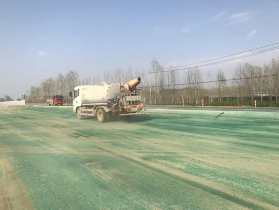 因地制宜,创新扬尘管理。项目部率先引进环保抑尘剂,对易产生扬尘的重点区域进行喷洒抑尘剂和堆料封盖作业,在短时间内形成保护层,以削减扬尘污染,确保施工区域不起扬尘。