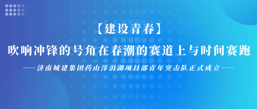 3月9日,济南城建集团园林公司成立药山洋涓湖项目部青年突击队。青年突击队现有队员13人,平均年龄30岁,将以“高举青年突击队旗帜勇挑急难险重新任务”为口号,立足施工一线,迎难而上、脚踏实地,在施工生产中切实发挥生力军和突击队作用。