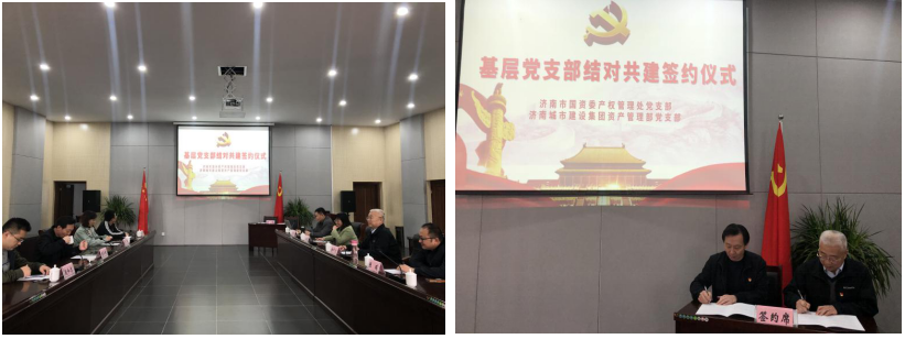 活动中,结对双方首先举行了结对共建签约仪式,双方党支部书记分别进行了讲话。资管理部党支部负责同志表示,希望通过“将党建作为工作统领、以共建促交流、将信任转化为责任”三个方面促进党建与工作相互融合,相互促进。市国资委产权管理处党支部负责同志重点阐述了党建工作的重要性,在建立科学规范、灵活高效的国有资产管理制度,充分发挥资产效益等重点工作给出了建议指导。随后,双方党支部书记签订了《基层党组织结对共建协议书》。