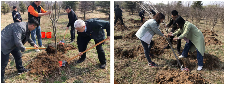 签约仪式结束后,全体党员共同前往植树地点开展植树活动。在这个春回大地、欣欣向荣的日子里,大家分工明确、齐心协力,按照“挖坑、播种、填土、浇水”的程序,将一棵棵充满生机与希望的树苗植入充满活力的土壤,同时也种下了我们的希望之树。结对双方在一片热火朝天、其乐融融的氛围中顺利完成了本次植树活动,为济西湿地更增添了一份新绿。