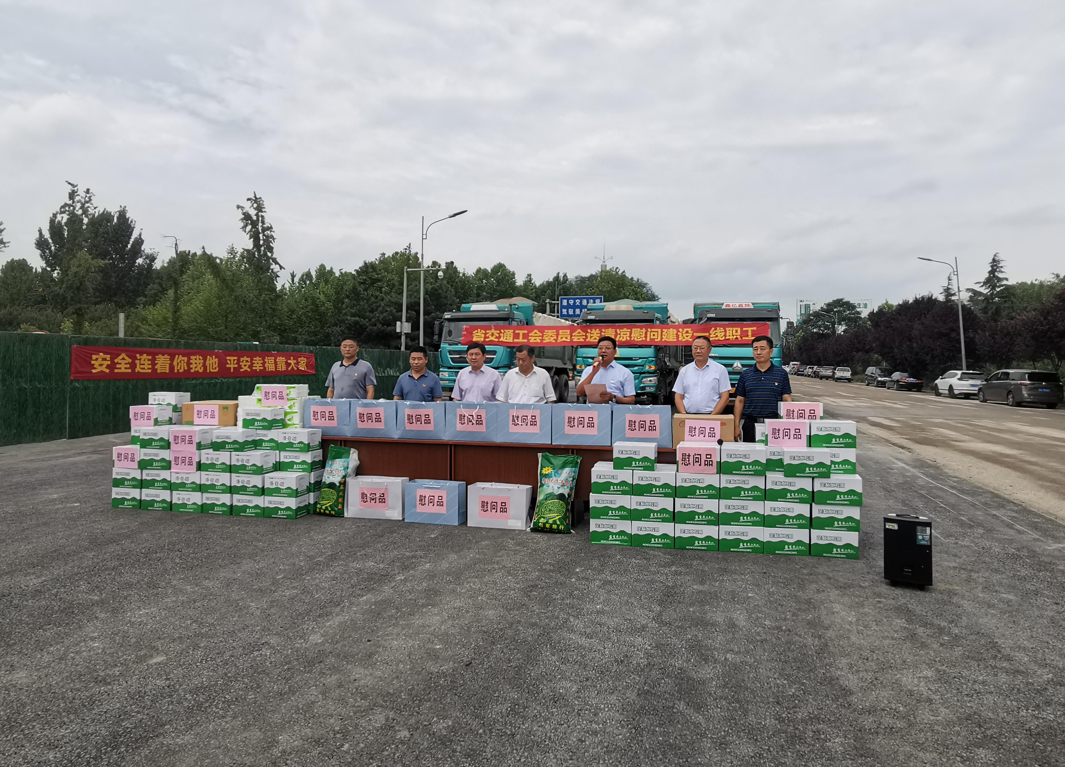 省交通工会副主席王迎军慰问奋战在一线的公路建设者,送上了夏日防暑降温物品,对全体参建人员战高温、斗酷暑,为加快工程建设所付出的努力表示感谢。王迎军要求,全体公路建设者要进一步加强党建引领,全面学习落实习近平总书记“七一”讲话精神,确保共产党人的党员先锋作用。要求各参建单位要确保职工权益落实到位,为一线职工创造更好更舒适的作业环境,把“为人民服务”的宗旨做到实处,保障职工安全度暑,保障工程安全度汛。