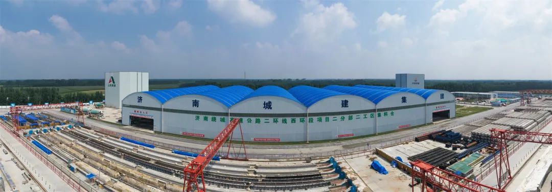 项目推进中,为提升企业全产业链整合能力、增强市场竞争力,集团以大西环项目为试点,遵循“因地制宜、节约土地、保护环境、安全可靠”的原则,投资8000万元建设济南绕城高速公路二环线西环段项目预制场站,保障材料生产、安装无缝衔接,开创了一条集生产、施工、服务一条龙标准化厂区建设新路子。