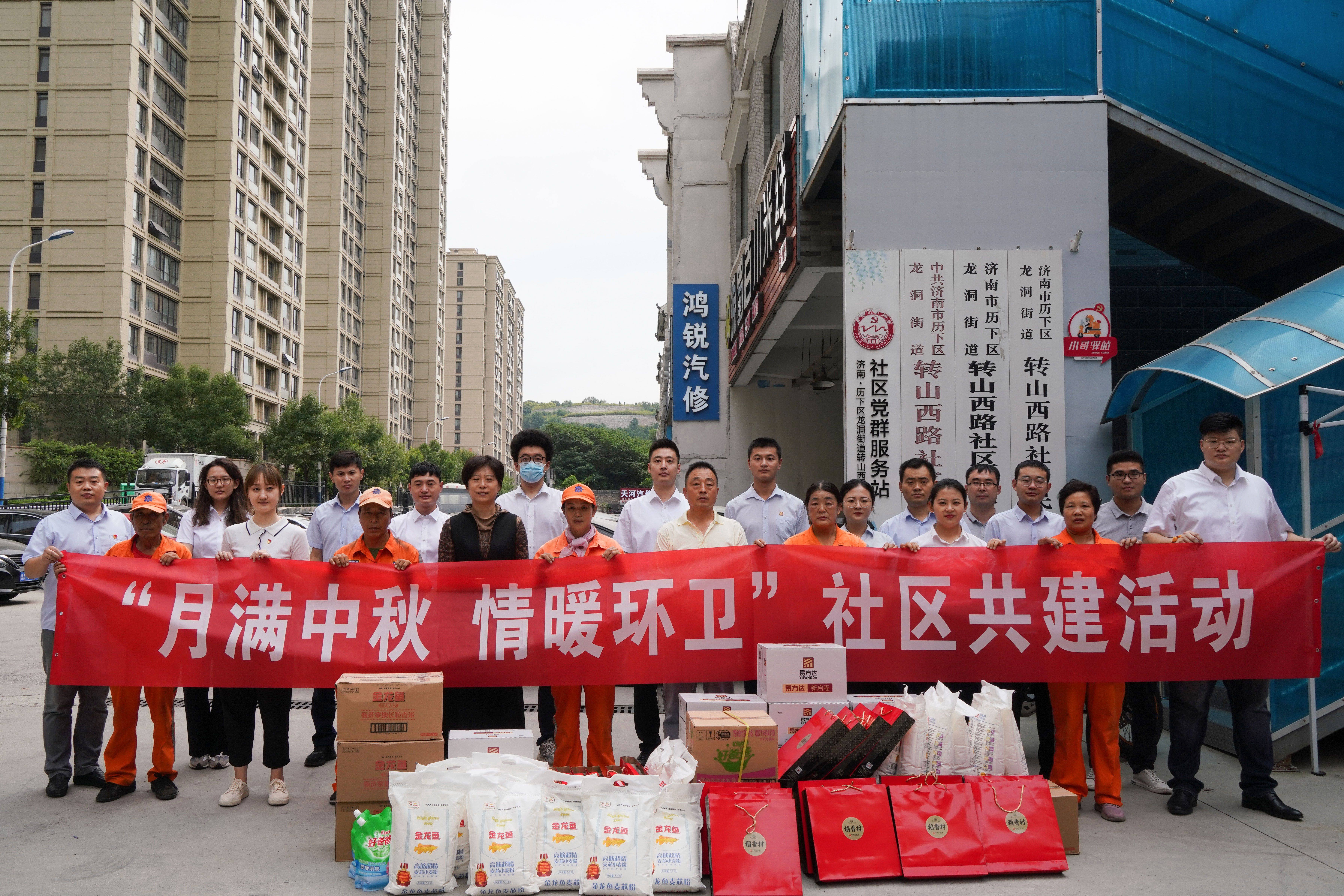 为深入践行“我为群众办实事”主题活动,大力弘扬“人道、博爱、奉献”的精神,感恩环卫工人为美化城市家园作出的奉献,9月9日上午,在中秋国庆“双节”即将来临之际,304am永利集团集团有限公司团委、304am永利集团集团投资有限公司团支部、济南金曰公路工程有限公司团委、山东易方达建设项目管理有限公司团委联合开展“月满中秋·情暖环卫”社区共建活动。